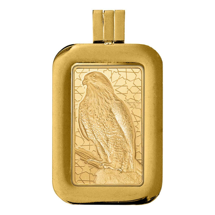 金條的正面到背面描繪了老鷹的形象,反面刻有製造商的標誌、重量和純度,並且金條的反面都刻有一個獨特的7位數的序列號。金條上還印有"ESSAYEUR FONDEUR"的字樣,旁邊還有一個矩形的 PAMP 標誌。這個印記保證了用來鑄造金條的黃金是經過化驗和認證的,代表是真實的且是最好的質量。